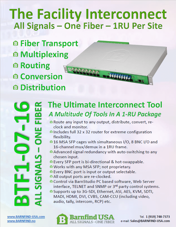 The BarnMini-11 is the big brother to the popular BarnMini-01 solution that delivers simple and reliable point-to-point digital extension. BarnMini-11 offers support for up to 12 Gbit/s bandwidth.