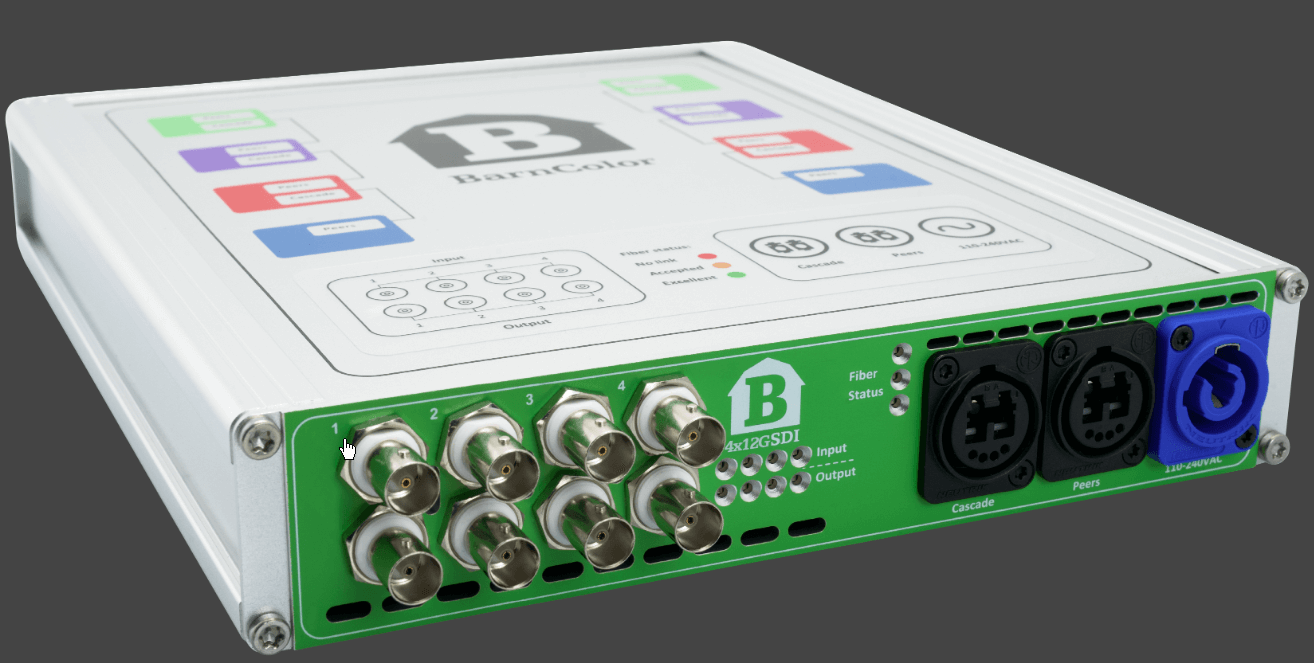 Video over Fiber Solution w/4x 12G-SDI Forward/4X 12G-SDI Returns – Blue. Designed to be a cost-effective and easy-to-deploy solution for transmitting multiple video signals both directions on a single fiber cable. BarnColor allows you to handle up to 32 x 3G-SDI signals (16 forward and 16 returns). Each BarnColor device handles up to 8 signals (4 forward and 4 returns) and up to 4 different colors of BarnColors can be daisy chained. This flexible system is easy to install, upgrade and use. It is well suited for both fixed and temporary installations.