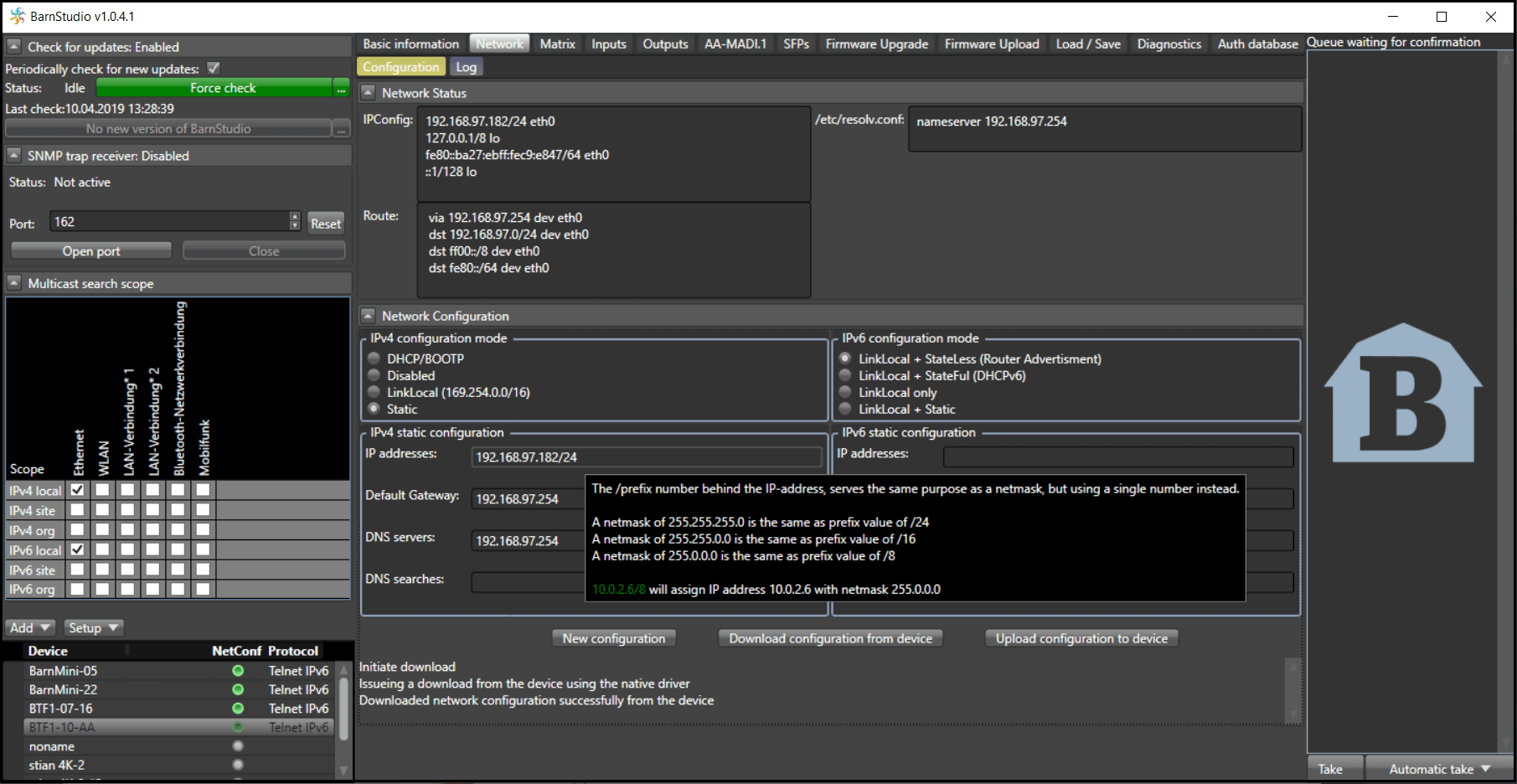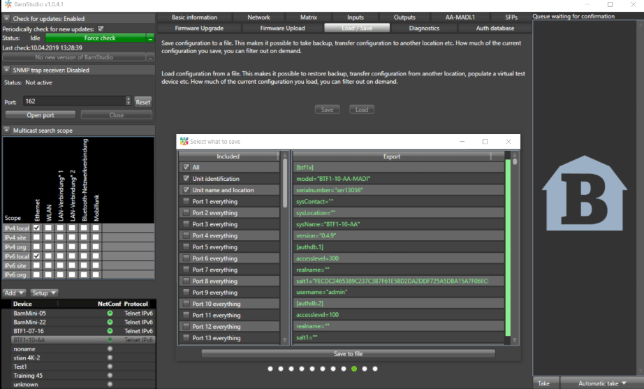 BarnStudio reads the needed information about every port. In particular, the SFP’s are monitored in a separate list with among others temperature, signal strengths, signal loss, manufacturer, serial number, wavelength, connector type etc. With Barnfind, you are in control of your own solution.
