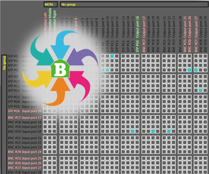• Matrix: full 32×32 crosspoint matrix routing functionality