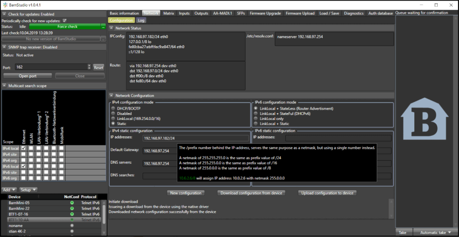 Easy to deal with SNMP/MIB file (IPv4/IPv6). Please ask the Barnfind team if you want to have our SNMP/MIB file in order to use your own software. This is of course free of charge!