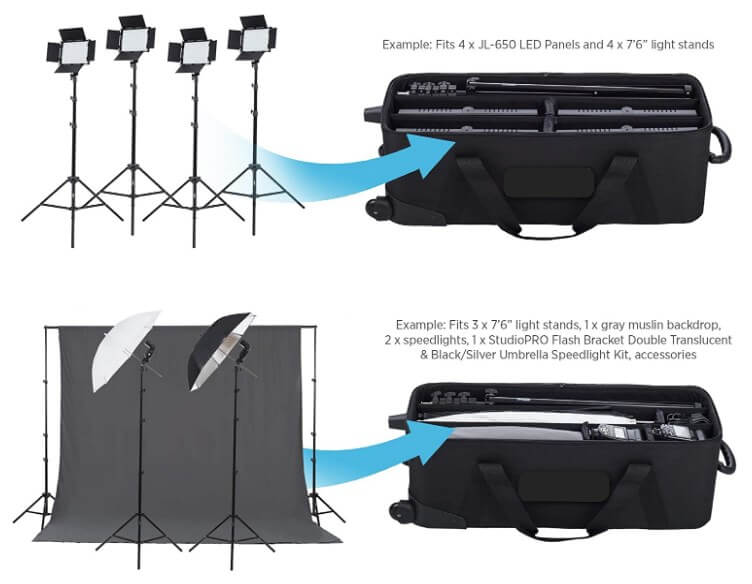 Kit comes with carrying bag for lights and tripods