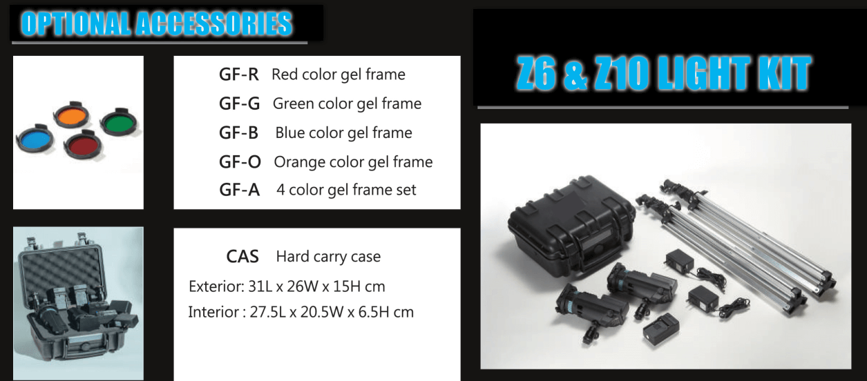 | LIGHT FEATURES: Color, Cases | DAYLIGHT/available in Tungsten, Tungsten/available in Daylight |